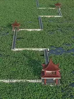 2️⃣ Five Pavilions and Nine-Turn Bridge
