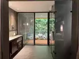 Surrounded by forests and backed by the entire mountain, you can run directly into the pool from the bed, very private