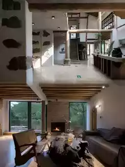 The hotel is located in Laoshiqiao Village, which has a history of over 800 years. It feels like a time tunnel that takes you back to a simple and quiet era. The babbling creek, the small waterfall at the entrance of the village, and the cliff gym form a beautiful picture. The mud walls, green tiles, towering ancient trees, and old objects scattered everywhere tell the story of time. The hotel is built on a mountain and by a creek, with villas scattered among the mountains and surrounded by lush forests, truly achieving "breathing with nature."
