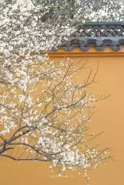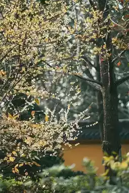 This location features red, white, and wax plum blossoms, perfectly complemented by yellow walls and gardens, making it a great spot for photography.