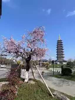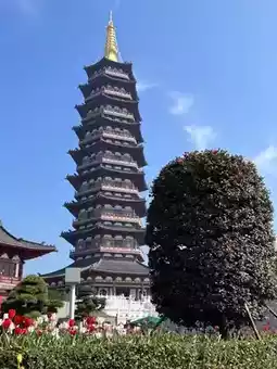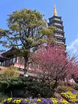 Beyond the pagoda itself, the park below is another springtime highlight. Lush trees provide ample shade, and the air is filled with the fragrance of flowers. It's a favorite spot for locals to stroll, admire the blossoms, and take photos. Children frolic on the grass, elders chat leisurely on benches, and young people capture the beautiful moments with their phones. The Wanfo Pagoda Park in spring is not just a scenic spot; it's a public space brimming with life and human connection.