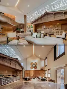 The hotel's architectural style cleverly blends modern simplicity with natural rustic charm. The wooden exterior complements the surrounding forest, as if it had grown organically from the land. The lobby is spacious and bright, with high ceilings and simple chandeliers, creating a sense of openness and comfort. The front desk staff were warm and attentive, and the check-in process was quick and smooth. They also thoughtfully introduced the hotel's facilities and nearby attractions.