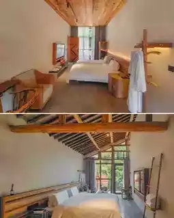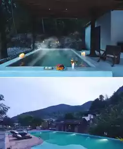 It took 6 years of ingenuity to awaken and revive more than 40 ancient village buildings with 800 years of history. Mortise and tenon craftsmanship, carved beams and painted buildings, and bluestone bridges have been completely preserved. The buildings are built along the stream, surrounded by mountains on three sides, with glass terraces hanging over the stream and an infinity pool embedded in the green forest. Shenghua Academy, Cliffside Coffee Shop, Mine Hot Spring and other spaces perfectly integrate modern aesthetics and rural atmosphere, and everywhere is the wonderful artistic conception of "trees in the house and mountains in the room".