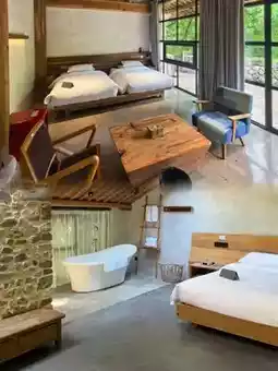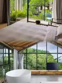 🎈 Activities: Practice yoga by the creek in the early morning, visit Shenghua Academy to play the zither and paint in the morning, hide away in the cliffside café in the afternoon, soak in the warm water of the mine pit hot spring or jump into the infinity pool at dusk while watching the sunset dye the mountains golden red. At night, intangible cultural heritage artists teach Jinhua paper-cutting and Wuju opera face painting, offering a fully immersive experience!