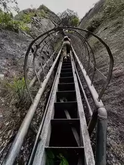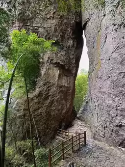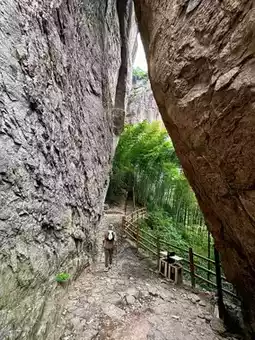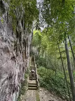 Beyond the Chinese Paladin photo spots, Shouxian Valley’s natural wonders are breathtaking. The "Heavenly Ladder" is definitely a trial for the brave. The inner ladder is nearly vertical at 24 meters with 70 nerve-wracking steps, where you can clearly hear your heartbeat as you climb; the outer ladder is over 50 meters with a gentler slope. From the top, you can overlook the entire valley, where layers of bamboo forests and distant villages form a stunning landscape painting, making all fatigue vanish in that moment.