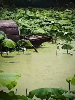 Lotus leaves taller than people! Boardwalks, black awning boats, thatched pavilions… Wearing light-colored dresses, every shot looks like a photoshoot📸