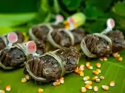 Some artisans have occasionally created ingenious designs. Some add baked walnuts and peanuts to their sesame-sugar filling to taste better. Others dye rice flour with corn, red beans, iodine leaves, rice, etc. in a lovely dopamine color that brightens the autumn day with each piece full of happiness