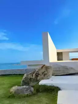 Who would've thought! Discovering this Qixu Hotel during my Jinjiang trip ☺️ I'm utterly blissed out 🥹 Built along the coastline, the minimalist architecture is super stylish, with a small island nearby. The beach downstairs is pristine – one whole day isn't enough! My social media blew up with questions after posting, and the photos are incredibly photogenic 📷
