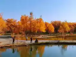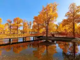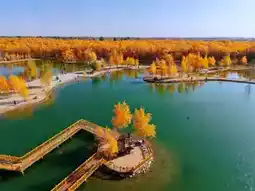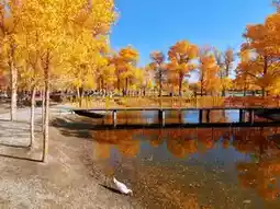 1. Jinbo Lake: The core essence area! Poplars reflected on the water double the golden effect, low-angle shots of reflections look like oil paintings, the lake center tree + rule of thirds composition guarantees 100% photogenic results.