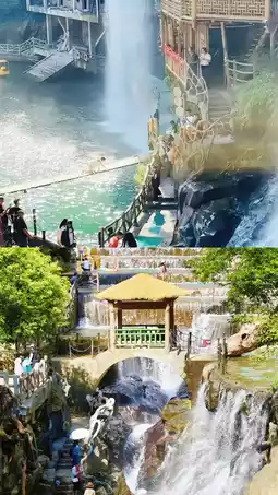 * 🌿 Natural Scenery: The area boasts primeval forests, cascading waterfalls, and crystal-clear streams as its main attractions. The waterfalls vary in form, some resembling "a silver river pouring from the heavens," with must-visit spots like tiered falls, floating bridges, and high-altitude cable cars. The streams are dotted with small pools and ponds, offering cool, refreshing water perfect for summer fun.