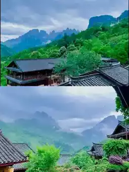💒The ancient village homestay is excellent, surrounded by beautiful scenery. It is located on the southern slope of Shengtang Mountain, west of Wuzhi Mountain, all featuring Danxia peak forest landforms. The red cliffs, clear water, and green trees complement each other here, with continuous mountains, babbling streams, and towering ancient trees🌳.