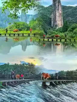 Zhutan Mountain is the most classic stepping stone bridge photo spot in Xiandu Scenic Area (P1 camera position). The old farmer leading an ox performance is a regular show, free on weekends and holidays, and requires a fee on weekdays. You can also enjoy the same filming location for "The Legend of Shen Li" here, as if reliving the sweet daily life of Xingzhi and Shen Li.