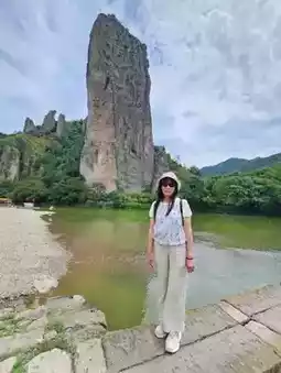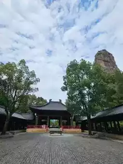 Take the Xiandu Scenic Area shuttle bus and get off at Dinghu Peak Station. A short walk will take you to the entrance of the Dinghu Peak scenic area. The scenery along the river is beautiful and leisurely, the water is turquoise, and you can always look up to see the rock formations of Dinghu Peak. Continue following the signs until you find Dinghu Peak getting closer. Inside, you'll find the Yellow Emperor Shrine, a place dedicated to the Yellow Emperor, and a wall depicting the Hundred Family Names.