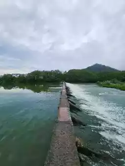 Arriving at Zhutan Mountain, the stone bridge, clouds, and Dinghu Peak are reflected in the water, creating such a natural and beautiful scene that truly bathes the eyes in beauty. This beauty, woven into the landscape of mountains, water, and land, is truly breathtaking.
