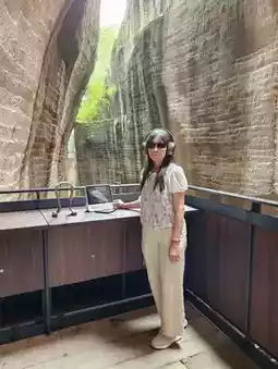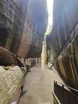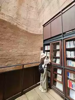 The bookroom's roof is not completely enclosed, allowing sunlight to filter through the crevices on sunny days. Whether it's the light and shadows on the stairs, the cliffs, or the bookshelves, every detail creates a breathtaking scene. Enjoying the harmony of nature and creative design here truly feels like a journey for the soul!