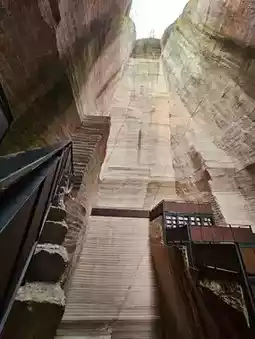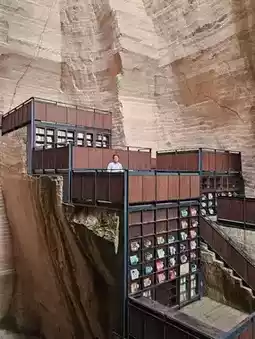 The Yandang Bookroom is a repurposed abandoned quarry. Over thousands of years, human stone extraction has left behind more than 3,000 caves. Designers have ingeniously transformed these natural stone caves and steep cliffs by embedding staggered stone staircases and bookshelves, turning the former quarry into a stunning and popular destination for visitors.