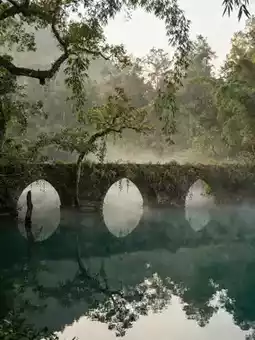 Pools of emerald water like scattered green gems lie among the mountains, a 68-level waterfall cascades like the Milky Way, the ancient Seven-Arch Bridge spans the clear waves, vines entwine the bridge—this is Libo Xiaoqikong, rated by China National Geographic as "China’s most beautiful forest." The karst landscape collides with emerald waters and green mountains to create a unique fairy charm. Visitor density is only one-third that of popular scenic spots.