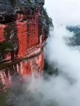 Qiyun Mountain, known for its "Danxia landform + Taoist culture," is recommended by National Geographic. Red rock walls and white mist create a watercolor xianxia painting. Moonlight Street is a Taoist town built on a cliff, with white walls and black tiles in Huizhou style, where Taoist priests in robes stroll leisurely, making you feel like you've stepped into a sect headquarters from a xianxia drama.