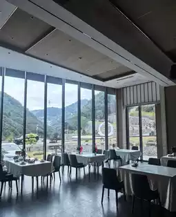 The breakfast combination is nutritious and enjoyable. Early the next morning, the rain stopped, and the fresh air after the rain combined with the green scenery was truly delightful. There was even misty fog floating on the mountains, giving it a magical feel. After breakfast, we took a stroll and sat on the swing on our room's balcony to appreciate and experience the beautiful scenery, becoming one with nature ⛰️🌲
