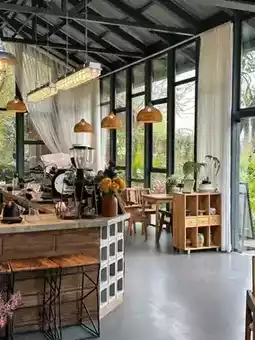 🍃 Highly recommended for photo ops! The most chill spot is definitely this "Old House Café"—on clear days, the scenery is stunning, surrounded by lush greenery, giving off a strong countryside vibe. 🌴