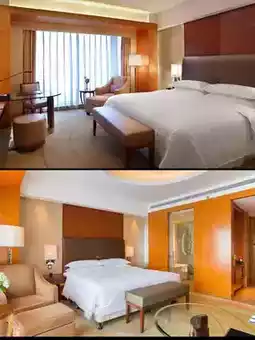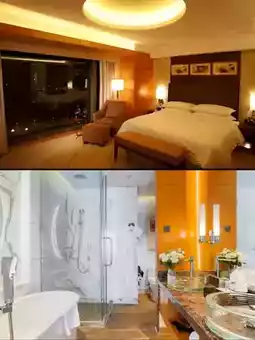 As soon as you step into the room, you'll be enveloped in comfort. Each room is equipped with the Sheraton Signature Sleep Experience Bed, featuring a mattress that's just the right firmness, guaranteeing a rejuvenating night's sleep. There's also a spacious work desk and high-speed internet access, perfect for business travelers who need to stay connected. Plus, the panoramic floor-to-ceiling windows allow you to enjoy the city nightscape while taking a bath – pure bliss!