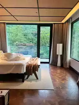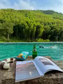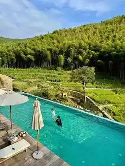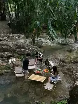 Hey guys! Right here in Qingyuan!! A newly opened mountain pool villa😭! Comes with a spacious large pool🏊 where you can soak together and enjoy the mountain view⛰. During the day, camp and play with kids on the forest-style courtyard lawn⛺, every shot is a masterpiece📸. In the afternoon, you can walk to the creek and step right into the cool water💦. Who else gets this feeling!