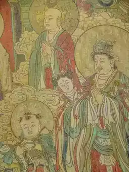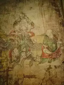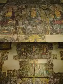 Unfortunately, the middle hall murals were stolen and sold in the 1920s. Fortunately, the murals were discovered by villagers during transportation after being cut into pieces. Except for a small portion that was taken away and remains missing, most were recovered and restored by villagers who hired experts. Therefore, the cut marks and repair traces are still clearly visible on the murals today.