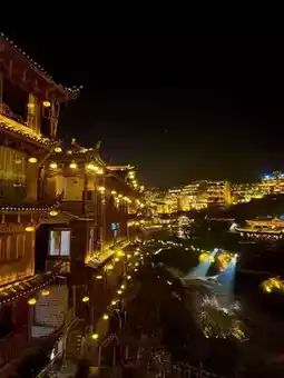 🌉 Furong Town: A thousand-year-old Tujia ancient town next to a waterfall. At night, pumpkin lanterns light up, and the sound of the waterfall creates a unique atmosphere.