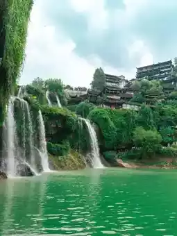 The tallest 60-meter waterfall in western Hunan cascades down cliffs, flowing right through the town. **Must-do activities**: