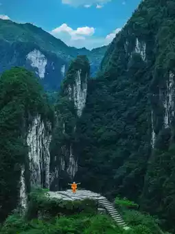 This is the place described in the poem "Heavenly Questions" by Qu Yuan, a poet of the Chu State. Surrounded by cliffs on three sides, with towering peaks and rock pillars, you can overlook Yuquan Stream below. It’s breathtaking, especially on rainy days when you can see misty clouds. Aerial photography here is spectacular. It’s also a place where the Miao people pray and hold ceremonies, and it’s the only Chinese filming location for "Wonder Woman."