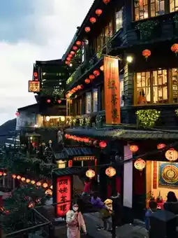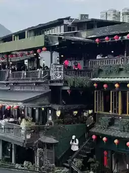 Jiufen is an unmissable destination in Taiwan. The retro scenery of alleys adorned with red lanterns feels like a scene straight out of a movie. For a truly special experience, make sure to visit Haiyuelou Scenic Teahouse. 🌙🏮