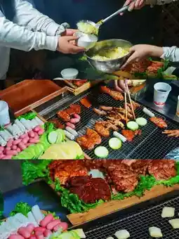🍖 Campsite barbecue: 💰80 per person, plenty of beef/pork belly, perfect with Yunnan dipping sauce!