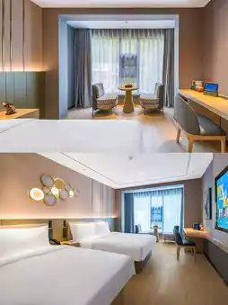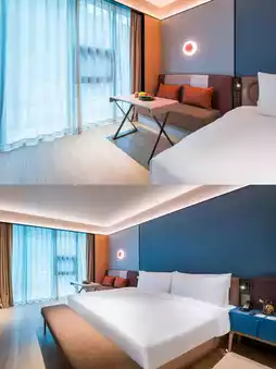 The guestroom is exquisite and cozy. The bed is moderately firm, and you feel like being gently embraced when you lie on it, which ensures a good night's sleep. The lighting design of the room is very considerate. There are multiple modes that can be switched according to different scenarios, so you can find the most suitable brightness for reading and resting. Smart devices are all available, and you can easily control the TV, air conditioner, etc. through your phone. The sense of technology makes life more convenient. In addition, the soundproofing effect of the room is excellent. When you close the door, the noise outside is instantly isolated, and you can enjoy your own quiet time.