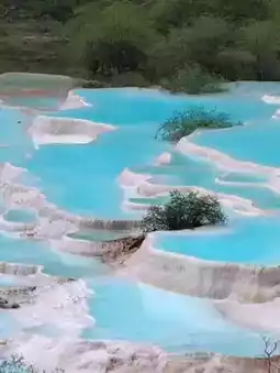 Huanglong's Five-Color Pool and Jiuzhaigou's Shuzheng Lakes are stunning with their vibrant blue waters. ♥