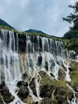Unlike many steep waterfalls, the wide and smooth travertine slope over which the water flows creates a silky, even cascade, spreading the water like a delicate veil.