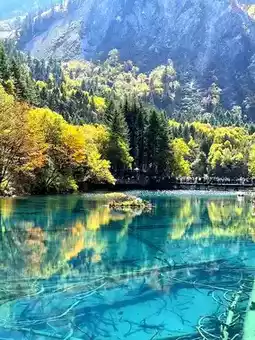 🔸Water quality peak: Crisp autumn air + less rainfall, lake water visibility reaches the highest of the year! The "Jiuzhai Blue" is so pure it’s breathtaking, with submerged deadwood and calcite clearly visible.