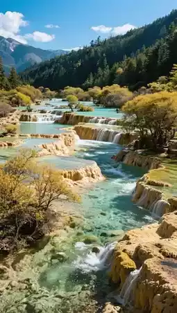 - Highlights: Calcified colorful pools, snow mountain reflections, primeval forest, like a fairyland.
