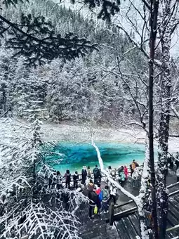 · Formed by travertine (calcium carbonate) deposits and mineral-rich waters, lakes like Five-Flower Lake (五花海) and Long Lake (长海) shimmer in shades of blue, green, and gold.