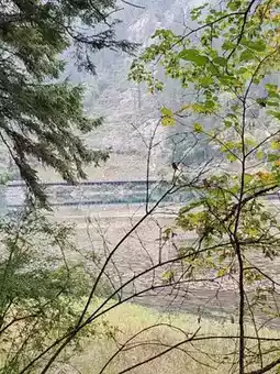 Peering through the gaps in the forest, one can see golden marsh meadows stretching out, embraced by verdant mountains and low-hanging clouds—a scene reminiscent of a delicate ink-wash painting.