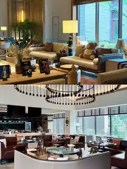 As soon as you enter the hotel, it feels like stepping into a fairy tale forest castle. The large lawn is lush and green, colorful flowers bloom freely, distant green mountains roll on, and mist lingers, creating an exquisite scene. The hotel also has an artificial lake with crystal-clear water, reflecting the surrounding buildings and trees, making every photo look like a masterpiece. When night falls, twinkling lights turn on, instantly enhancing the atmosphere to the utmost romance.