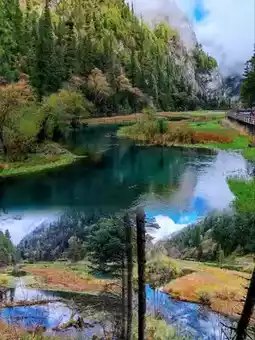 Five-Flower Lake is renowned for its distinct layers of water. Go down to Pearl Beach and Pearl Waterfall, where the rushing water and tiny droplets shimmer like pearls, resembling a waterfall of white gauze from afar. Be sure to experience the majestic rush of Nuorilang Waterfall. A stroll through the forests and lakes surrounding Shuzheng Waterfall and the Shuzheng Group of Lakes is truly relaxing. Small lakes like Wolong Lake, Huohua Lake, Shuanglong Lake, and Reed Lake are interspersed throughout the area, each offering a unique and profound view. It's recommended to walk slowly and take photos while enjoying the scenery.