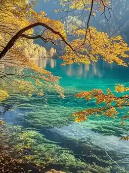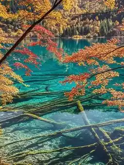 - Changhai Lake: A high-altitude lake with early snow-capped mountains, deep blue water reflecting golden forests. In the afternoon, when sunlight hits at an angle, the mountain glare is less, and the forests appear redder and more vibrant.
