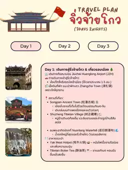 - 𝐷𝑎𝑦 2: From Jiuzhaigou County to Jiuzhaigou Scenic Area, full-day tour → Overnight stay in Wen County