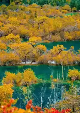 Autumn in Jiuzhaigou is a visual feast you absolutely cannot miss!✨ The best viewing time is from mid-October to early November, with late October being the absolute highlight—the forests seem to be set ablaze with vibrant gold, deep purple, and bright red intertwining and spreading. The leaf color change rate can reach up to 95%🏞️, creating breathtaking scenery!