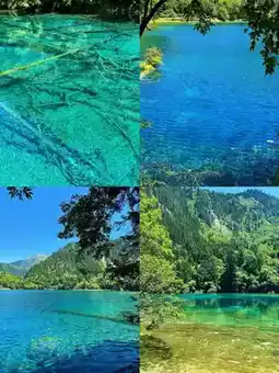 • Five Flower Lake - The water is emerald green like jade, sparkling under the sun✨