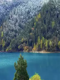 4️⃣ Long Lake: The highest lake in Jiuzhaigou, the reflection of the snow-capped mountains on the lake is super stunning 🏔️