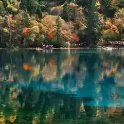 The Five-Color Pond (五彩池) in Jiuzhaigou is so enchanting, it feels like a celestial pond where immortals descend. The reflection of the autumn forest on the water is truly a spectacle. 🍂