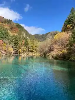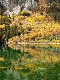 Pearl Shoal, or Zhenzhu Tan is a stunning travertine-covered platform and waterfall located in the Jiuzhaigou Valley National Park in northern Sichuan, China. It is one of the most famous and beautiful natural features within the park, which is known for its incredible landscapes. As crystal-clear water from melting snow and upstream lakes flows over the broad, gently sloping shoal, the sun reflects off the countless droplets. The effect creates the illusion of thousands of pearls sparkling and dancing across the surface, giving the shoal its name.