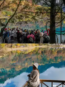 5️⃣ Morning and afternoon light are prime photography times. We recommend taking photos at Mirror Lake and Five Flower Lake during the soft sunlight, where the clear blue water reflects off the leaves.