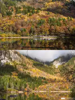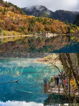 Jiuzhaigou Natural Reserve, located approximately 450 kilometers from Chengdu, is another stunning natural beauty. Surrounding the valley are a variety of trees, including snow-capped mountains, massive waterfalls, and forests. Furthermore, there's a crystal-clear blue lake, reminiscent of a fairytale land, surrounded by trees. The lake itself is a prime spot to witness the stunning changing colors of the leaves. The vibrant colors reflecting on the lake create a breathtaking sight that will take your breath away.